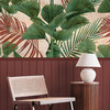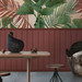 Fototapete Dschungelgrün mit Holzpaneel Rot Beige – Tropische Vliestapete erweiterbar
