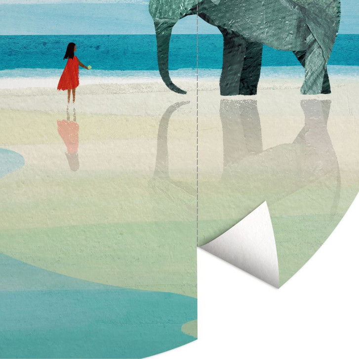 Diese runde Fototapete bringt die unberührte Schönheit des berühmten Elephant Beach auf der Insel Havelock in dein Zuhause. Der Elefant, der dem Strand seinen Namen gibt, steht majestätisch im klaren, seichten Wasser, während eine einzelne Gestalt in leuchtendem Rot ruhig und ehrfürchtig an seiner Seite verweilt. Die weiten Sandstrände, das sanfte Rauschen des Meeres und die ruhige, endlose Weite des Himmels lassen dich die friedliche Atmosphäre dieses tropischen Paradieses förmlich spüren.