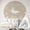 Tauche ein in die beruhigende Schönheit des Ozeans mit dieser stilvollen runden Tapetenmalerei. In sanften Naturtönen bringt dieses Design die faszinierende Welt des Meeres direkt in dein Zuhause. Die minimalistische, detaillierte Illustration schafft eine ruhige Atmosphäre, die sich harmonisch in jedes Wohn- oder Kinderzimmer einfügt.