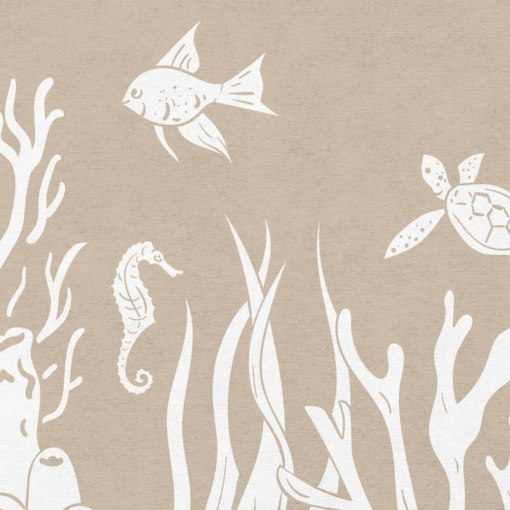 Tauche ein in eine verträumte Unterwasserlandschaft, die Ruhe, Schönheit und sanfte Bewegung vereint. Diese stilvolle Fototapete bringt den Zauber des Meeres direkt in dein Zuhause und schafft eine Atmosphäre der Gelassenheit. Das subtile Farbenspiel mit seinen sanften Naturtönen und zarten weissen Illustrationen sorgt für einen harmonischen und zeitlosen Look.