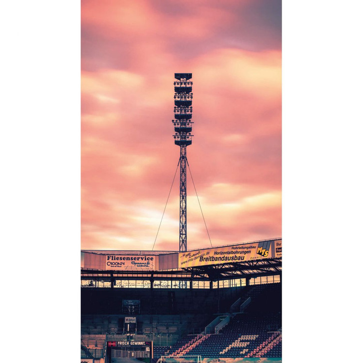 Bereichere dein eigenes Zuhause mit raffinierten Bildern und schaffe einen individuellen Ort zum Verweilen! Bist du ein echter Fussballfan des FC Hansa Rostock? Mit dieser Fototapete kannst du deine Fan-Leidenschaft deutlich zeigen. Die Tapete gibt einen tollen Einblick in die Ostseestadtion in Mecklenburg-Vorpommern. Der Flutlichtturm hebt sich bei Sonnenuntergang von rosa Wolken ab.
