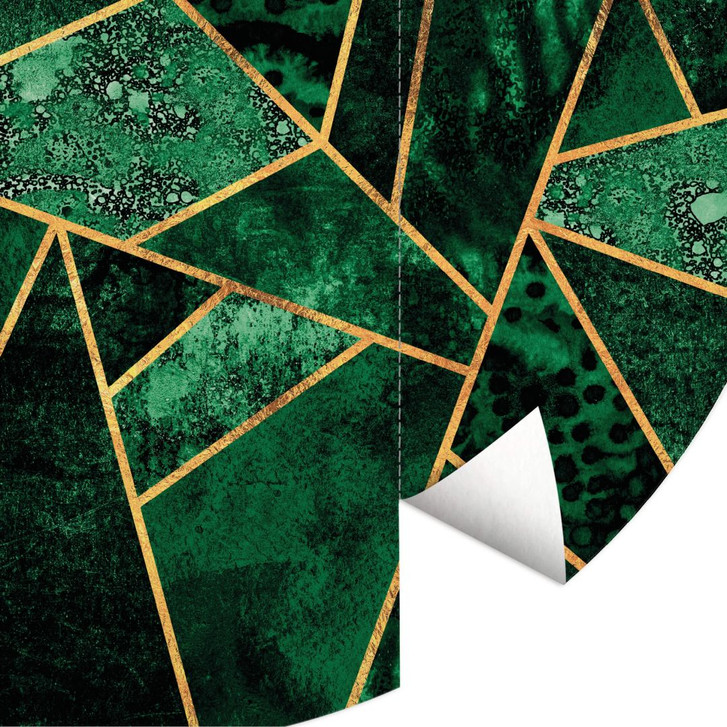 Die tiefen Grüntöne erinnern an Smaragde und haben eine geheimnisvolle Wirkung. Die verschiedenen Grüntöne werden durch die goldfarbenen Linien mit Glitzereffekt voneinander getrennt. Das auffällige grüne Design peppt jede eintönige Wand auf!