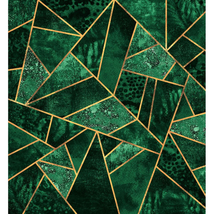 Die tiefgrünen Farben erinnern an Smaragde und wirken geheimnisvoll. Die verschiedenen Grüntöne werden durch die goldfarbenen Linien mit Glitzereffekt voneinander getrennt. Das auffällige Design in Grün peppt jede eintönige Wand auf!