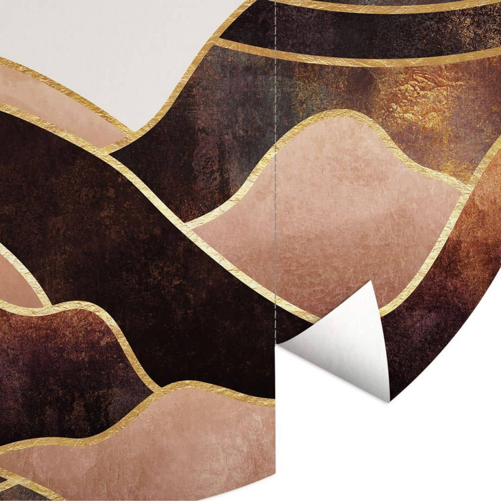 Die warmen Farben Gold und Braun des Sonnenuntergangs dominieren den abstrakten Kunstdruck von Elisabeth Fredriksson. Im Mittelpunkt steht die golden schimmernde Sonne, umgeben von den wellenförmigen Bergen, die das Motiv schmücken. Verschönere deine Wände mit den kreativen und innovativen Designs von Fredriksson!
