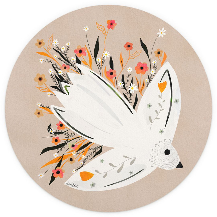 Fototapete Friedenstaube mit kleinen Blumen - Bloom - Rund - Selbstklebend/Vlies