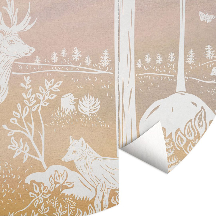 Fototapete Friedlicher Wald mit Hirschen und Füchsen - Ombre - Kikki Belle - Rund - Selbstklebend/Vlies