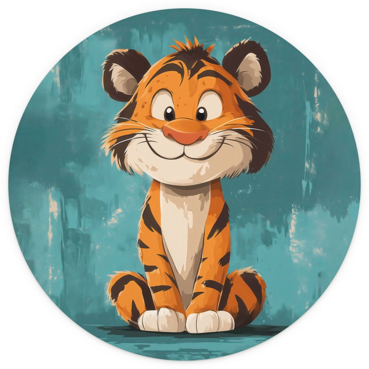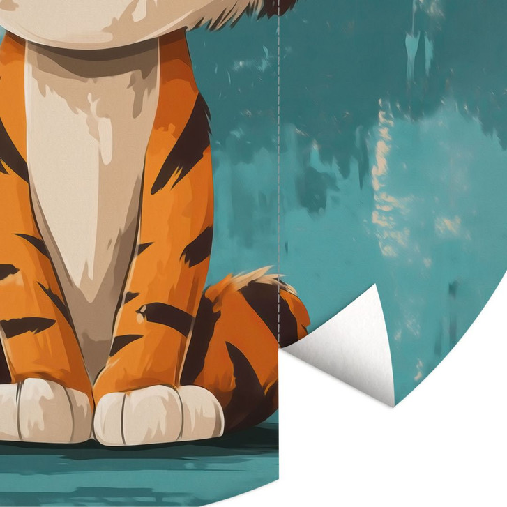 Mit seinem breiten Lächeln und neugierigen Blick bringt dieses kleine Tigerjunge spielerische Leichtigkeit in jeden Raum. Die hellen, warmen Orangetöne seines Fells bilden einen spannenden Kontrast zum kräftigen türkisfarbenen Hintergrund und verleihen dem Motiv eine frische, moderne und dynamische Wirkung. Diese Tapete im Kreisformat ist ideal für alle, die dem Kinderzimmer oder dem Spielbereich eine besondere Note voller Lebensfreude verleihen möchten.