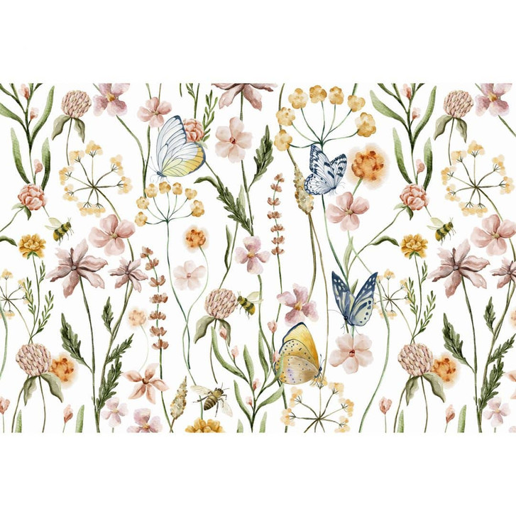 Fototapete Frühlingswiese mit Schmetterlingen - Blumentapete - UN Designs