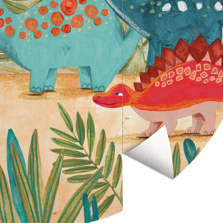 Die runde Fototapete von Caroline Bonne Müller bringt die fröhliche Welt der Dinosaurier direkt ins Kinderzimmer. Mit einer farbenfrohen Vielfalt an liebevoll gestalteten Dinosauriern und tropischen Pflanzen wird diese Tapete zum Mittelpunkt jedes kreativen Spielzimmers. Die perfekte Form des Kreises unterstreicht das harmonische und moderne Design.
