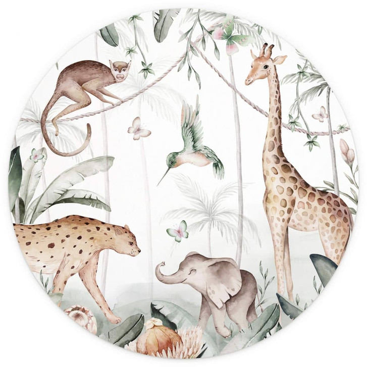 Fototapete fürs Kinderzimmer - Tiere im Dschungel Rund - Kvilis - Selbstklebend/Vlies