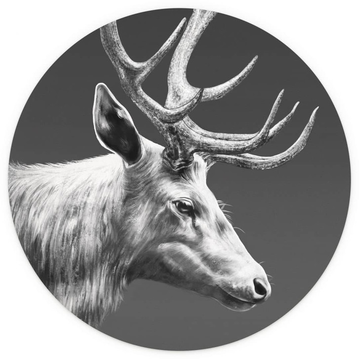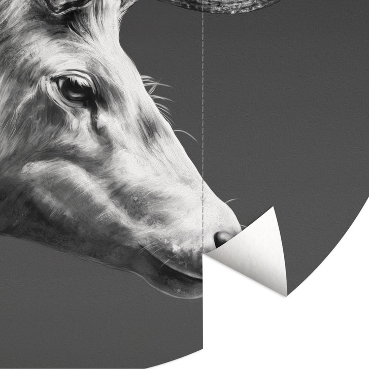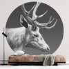 Fototapete Hirsch mit Geweih schwarz-weiss - Roberg - Rund - Selbstklebend/Vlies