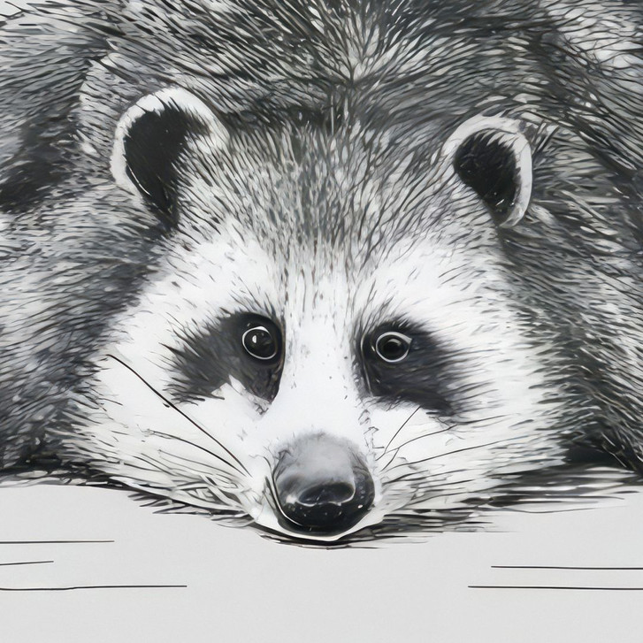 Das schwarz-weisse Motiv zeigt eine humorvolle Illustration eines erschöpften Waschbären, der flach auf dem Boden liegt. Über dem Waschbären steht in grossen schwarzen Buchstaben der Spruch „I hate morning people... and mornings... and people“. Der Waschbär sieht müde und genervt aus, was die Botschaft des Spruchs auf humorvolle Weise unterstreicht. Das Bild ist auf weissem Hintergrund gestaltet, wodurch sich Text und Illustration deutlich abheben. Diese Fototapete ist ideal für alle Morgenmuffel und verleiht jedem Raum eine humorvolle und sympathische Note.