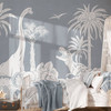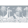Mit dieser beeindruckenden Fototapete von Kikki Belle holst du dir den Zauber der Dinosaurier in dein Zuhause. Die kunstvoll gestalteten weissen Silhouetten von Dinosauriern wie dem eleganten Brachiosaurus, dem mächtigen Tyrannosaurus Rex und dem faszinierenden Triceratops bilden eine zauberhafte Landschaft, die von exotischen Palmen und üppigen Pflanzen eingerahmt wird. Ergänzt durch einen dezenten, beruhigenden Hintergrundton wird diese Fototapete zu einer traumhaften Kulisse.
