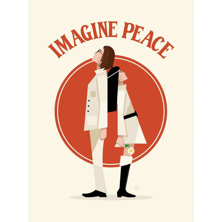 Diese Tapete von Retrodrome zeigt zwei stilisierte Figuren, die an John Lennon und Yoko Ono erinnern und die kraftvolle Botschaft „Imagine Peace“ vermitteln. Diese harmonische Darstellung lädt dazu ein, den Traum von Frieden und Einheit in den eigenen vier Wänden zu leben.
