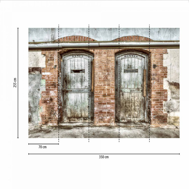 Fototapete Industrial OldRestroom1 in grau beige - Vliestapete Designwalls 2 - 2.55x3.5 m