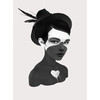Diese Zeichnung zeigt ein Porträt eines Mädchens mit kurzen Haaren und einem Hut mit Federn. Das weisse Herz im Brustbereich sticht in diesem schwarz-weissen Motiv hervor. Gestalte deine Lieblingswand mit den ausdrucksstarken Illustrationen von Ruben Ireland und verwandle deine Wände in einen tollen Hingucker!