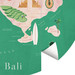 Verwandle dein Zuhause in ein tropisches Paradies mit dieser atemberaubenden Tapete, die eine detaillierte, illustrierte Karte der Insel Bali darstellt. Der erfrischende grüne Hintergrund bringt die lebendige, natürliche Atmosphäre Balis in dein Zimmer, während die Insel in sanften Rosatönen hervorsticht und ihre kulturellen und landschaftlichen Highlights präsentiert. Die liebevoll gestalteten Symbole und Wahrzeichen, wie ein beeindruckender Pagodentempel, ein Surfbrett, exotische Drachenfrüchte und ein kleiner Roller, fangen den einzigartigen Charme und die Vielfalt Balis ein. Ergänzt wird die Szenerie durch kleine Illustrationen von Palmen, Vögeln und einer Schildkröte, die das exotische Flair der Insel noch verstärken.