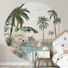 Die Gestaltung eines Kinderzimmers ist entscheidend für die Entwicklung der Kinder. Hier wird den ganzen Tag gespielt, getobt und gelernt. Mit dieser Dekoration werden sich die Kleinen besonders wohlfühlen. Das liebevoll illustrierte Design lädt Kinder jeden Alters zum Spielen und Entspannen ein. Mit der farbenfrohen Fototapete setzen Sie auf eine moderne Wanddekoration, die auf den ersten Blick beeindruckt. Die Vliestapete schafft eine tropische Kulisse im eigenen Zuhause. Bringt die Tapete an der Wand an und schafft einen frischen Look im runden Format!