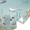 Toben, lernen, wachsen – ein Kinderzimmer muss viel aushalten, und mit dieser Dekoration kannst du helfen, es noch besser zu machen. Mit der runden Fototapete mit der Illustration von Kikki Belle kannst du das Kinderzimmer in eine kleine Unterwasserwelt verwandeln. Hier gibt es viele Meeresbewohner zu sehen. Der Boden ist mit bunten Korallen und Algen bedeckt. Im Wasser tummeln sich die verschiedensten Meeresbewohner. Lass deine Kinder Wale, Fische, Schildkröten, Seepferdchen, Delfine und Kraken entdecken.