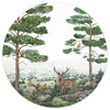 Lass das Gefühl des lebendigen Waldes in dein Zuhause! Zwischen den Bäumen kannst du kleine Waldtiere wie Füchse, Rehe und Eulen entdecken und bestaunen. Ein echter Hingucker fürs Kinderzimmer! Mit Kikki Belles rundem Waldmotiv setzt du ausserdem frische Akzente, die zum Wohlfühlen einladen. Als Tapete bringt sie Spass und Freude in Räume – mit diesen Naturillustrationen bringt man Kinderaugen zum Leuchten!