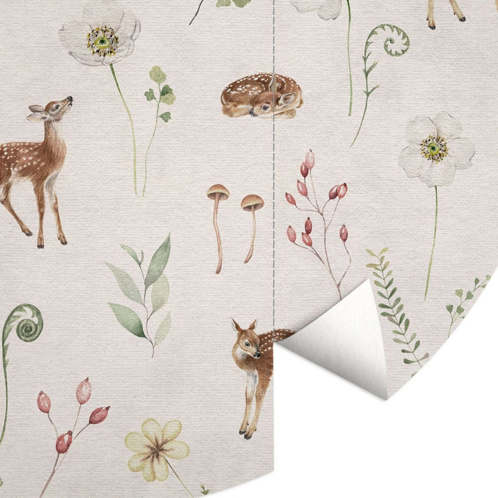 Fototapete Kleine Rehe zwischen Blumen - Kikki Belle - Rund - Selbstklebend/Vlies
