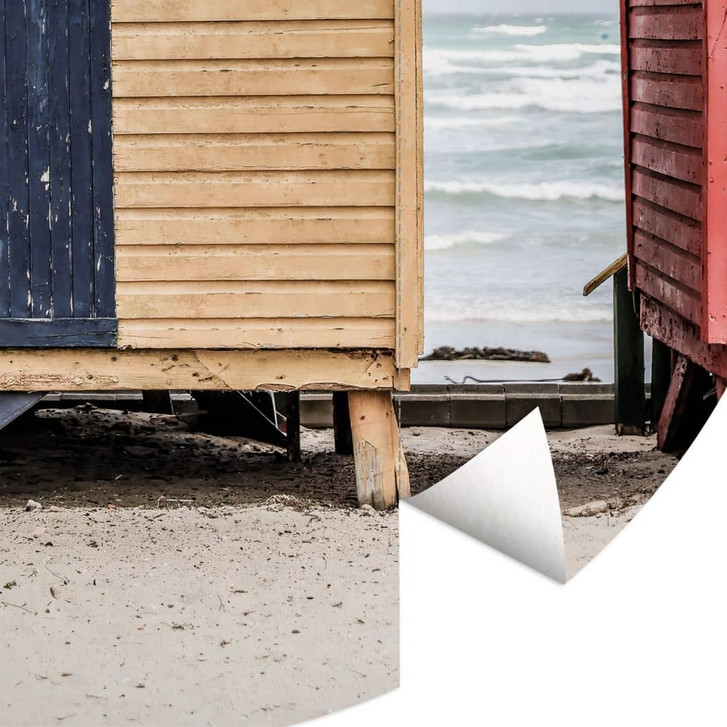 Fototapete Küstencharme - Bunte Hütten am Meer - Shot by Clint - Rund - Selbstklebend/Vlies