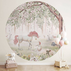 Fototapete Kvilis - Träume von Einhörnern - Rund - Selbstklebend/Vlies