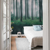 Der Anblick eines Waldes voller Bäume macht Lust, hinaus in die Natur zu gehen und einen gemütlichen Spaziergang zu machen. Die schlanken Bäume stehen dicht beieinander, umgeben von einem leichten Nebel, und vermitteln das Gefühl, selbst mitten im Wald zu sein. Das grüne Foto von Christian Lindsten verleiht den Räumen eine beruhigende Atmosphäre in natürlichem Look.