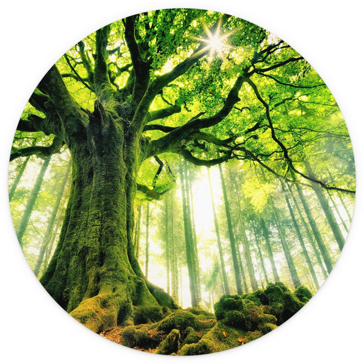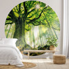 Verleihe deinem Raum einen natürlichen Charakter mit diesem Einrichtungsaccessoire, das freundliche Akzente setzt. Dieses Foto strahlt eine positive Stimmung aus und sorgt als Kreistapete für anhaltende Freude in den eigenen vier Wänden. Der Baum mit seiner üppigen Krone steht in diesem lichtdurchfluteten Wald und strahlt Kraft und eine wunderbare Aura aus, die sich positiv auf das Raumgefühl auswirkt. Die grünen Farbtöne stehen für pure Natur und schmücken die Wand hell und freundlich. Lass das wohltuende Naturflair in deine Räume einziehen und mach dein Zuhause gemütlicher! Mit dieser Naturtapete kannst du deinem Zuhause einen neuen Look verpassen, ohne renovieren und modernisieren zu müssen. Ob Badezimmer oder Flur, Schlafzimmer oder Wohnzimmer: Die grüne Tapete kann fast überall angebracht werden und lässt den Raum in einem neuen Licht erstrahlen.