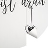 Positioniere die Tapete an der gewünschten Stelle. Streiche sie mit einer Filzrakel von innen nach aussen fest. Ziehe anschliessend nach und nach die Trägerfolie ab und streiche gleichzeitig die Tapete fest. Arbeite am besten immer von der Mitte nach aussen, damit Du Blasen vermeidest.