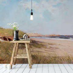 Diese beeindruckende Fototapete bringt die beruhigende Weite des Meeres direkt in dein Zuhause. Das Motiv zeigt einen idyllischen Weg durch die Dünen, der den Blick direkt auf das offene Meer lenkt. Die sanften Farben, bestehend aus erdigen Beigetönen der Dünen und kühlen Blau- und Grüntönen von Meer und Himmel, schaffen eine harmonische und friedliche Atmosphäre.