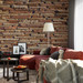Die Fototapete in trendiger Mauerwerk-Optik schafft ein warmes Raumgefühl.