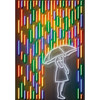 Lass dir vom Regen nicht die Laune verderben. Nimm ein heisses Bad, lies ein spannendes Buch und höre Lieder, die schöne Erinnerungen wecken. Das farbenfrohe Motiv mit dem Mädchen, das im neonfarbenen Regen steht, wird deine Stimmung an Regentagen heben.