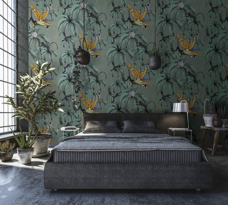 Fototapete mit Affen und Pflanzen, Grün Illustration 2.70 x 2.12 m