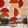 Diese hochwertige Fototapete von Ana Rut Bré bringt den Charme des Mid-Century-Designs in deine Räume. Die abstrakte Komposition aus Halbkreisen in warmen Terrakotta-, Beige- und Rosttönen erinnert an klassische Retro-Muster und verleiht deinem Wohnraum eine stilvolle Vintage-Ästhetik.