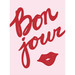Rosafarbene Tapete mit dem Spruch „Bonjour“ und roten Lippen
