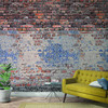 Fototapete mit Steinmauer als used look Rot, Blau ,Steinoptik 2.70 x 1.59 m
