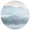 Diese runde Fototapete fängt die Ruhe eines nebligen Morgens in den Bergen ein. Die zarten Nebelschleier bedecken sanft die Baumkronen der Tannen, während die Berggipfel in der Ferne in einem sanften Licht schimmern. Die sanfte Farbpalette aus kühlen Blau- und Grautönen mit zarten Pastellakzenten verleiht diesem Motiv einen beruhigenden und eleganten Look.