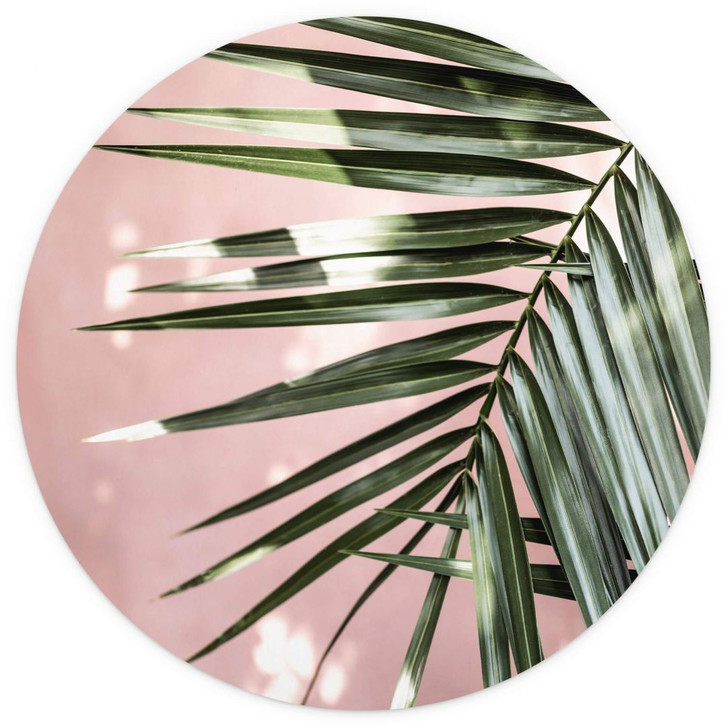 Fototapete Palmenblatt vor rosa Wand - Böhmer - Rund - Selbstklebend/Vlies
