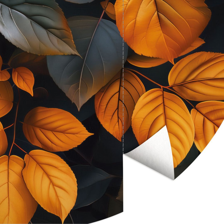 Mit dieser runden Fototapete von Justyna Jaszke holst du dir die faszinierende Schönheit des Herbstes direkt in deine Räume. Die leuchtenden Gold- und Orangetöne der Blätter bilden einen perfekten Kontrast zum dunklen Hintergrund und erzeugen eine kraftvolle und zugleich harmonische Wirkung. Die organische Rundform verstärkt die natürliche Ästhetik des Motivs und macht die Wandgestaltung zu einem echten Hingucker.