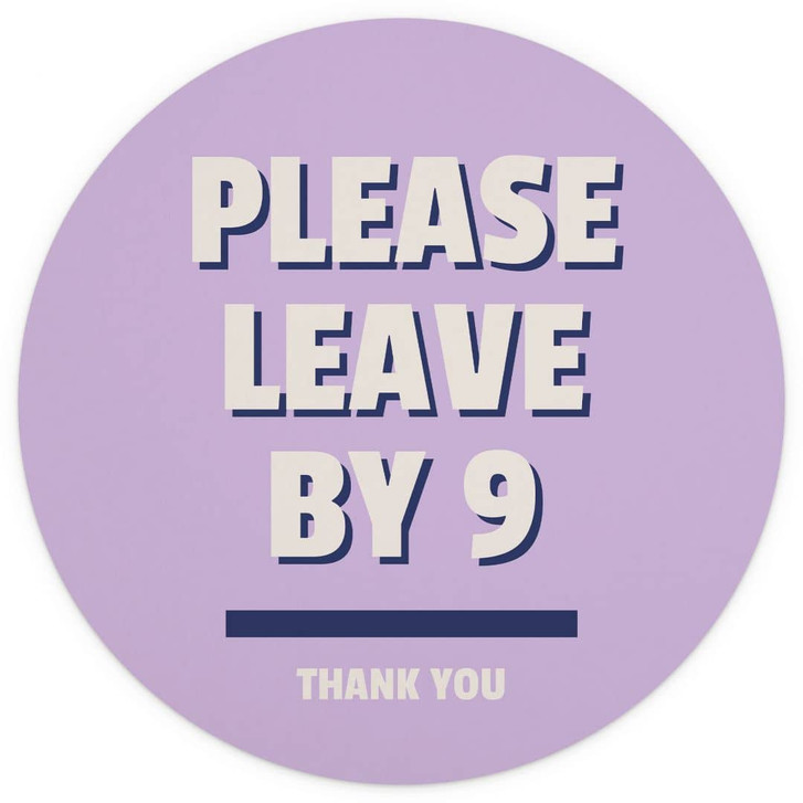 Mit der runden Fototapete „Bitte bis 9 Uhr verlassen“ kannst du ein stilvolles Statement setzen, das sowohl funktional als auch dekorativ ist – perfekt für alle, die Wert auf klare Kommunikation und modernes Design legen