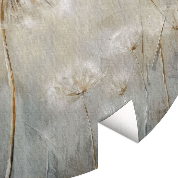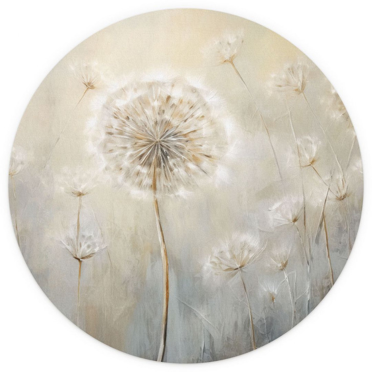 Diese runde Fototapete zeigt die subtile und zarte Schönheit von Löwenzahnblüten, die sich sanft vor einem verträumten pastellfarbenen Hintergrund entfalten. Die zarten Blütenköpfe in sanften Creme- und Beigetönen tanzen in einer leichten Brise und verkörpern die Leichtigkeit eines Frühlingsmorgens. Die runde Form dieser Tapete verleiht dem Motiv zusätzliche Eleganz und bietet einen modernen, raffinierten Akzent für jede Wand.