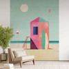 Diese wunderschöne Fototapete von Henry Rivers bringt die entspannte Atmosphäre eines sonnigen Strandtages direkt in dein Zuhause. Die stilisierte Rettungsboot-Hütte in kräftigen Rosa-, Rot- und Grüntönen steht vor einer ruhigen See und einem klaren, sonnigen Himmel. Die geometrischen Formen und sanften Farben schaffen eine moderne und doch beruhigende Szene, die an endlose Sommertage erinnert.