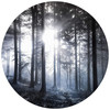 Fototapete Sonnenstrahlen im Wald Blau - Rund - Selbstklebend/Vlies
