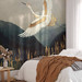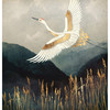 Verschönere dein Zuhause mit raffinierten Bildern und schaffe einen einzigartigen Ort zum Verweilen! Dieser Grafikdruck von SpaceFrog Designs zeigt einen Kranich in Weiss und Gold, der mit ausgebreiteten Flügeln über eine Graslandschaft fliegt. Im Hintergrund sind dunkle Berge zu sehen. Die Tapete bringt Farbe ins Spiel und verleiht deinem Zuhause einen ganz neuen Look.