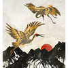 Bereichere dein eigenes Zuhause mit raffinierten Bildern und schaffe einen individuellen Aufenthaltsort! Der Kunstdruck von SpaceFrog Designs bringt dich hoch in die Lüfte: Zwei goldene Kraniche fliegen mit ausgebreiteten Flügeln über die Gipfel hoher Berge. Im Hintergrund sieht man die rote Sonne.
