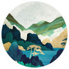 Verleihe deinen Wänden mit dem Bergmotiv in grünen und blauen Farben einen neuen, frischen Look! Kaum ein anderes Motiv lädt so zum Entspannen und Abschalten ein wie die Natur. Die künstlerische Darstellung als rundes Wandmotiv besticht durch die ruhige Berglandschaft samt Fluss und Felsen. Ein wunderbares Bild, um eine beruhigende Umgebung zu schaffen.