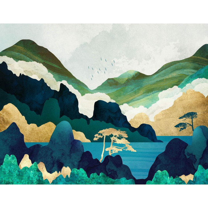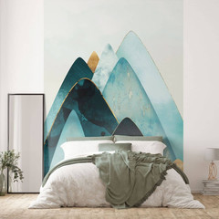 Verpasse deinen Wänden einen neuen, frischen Look mit dem Bergmotiv in grünen und blauen Farben! Kaum ein Motiv ist so förderlich für Entspannung und Erholung wie die Natur. Die künstlerische Darstellung als Wandmotiv besticht durch die ruhige Berglandschaft, inklusive Fluss und Felsen. Ein wunderbares Bild, um eine beruhigende Umgebung zu schaffen.