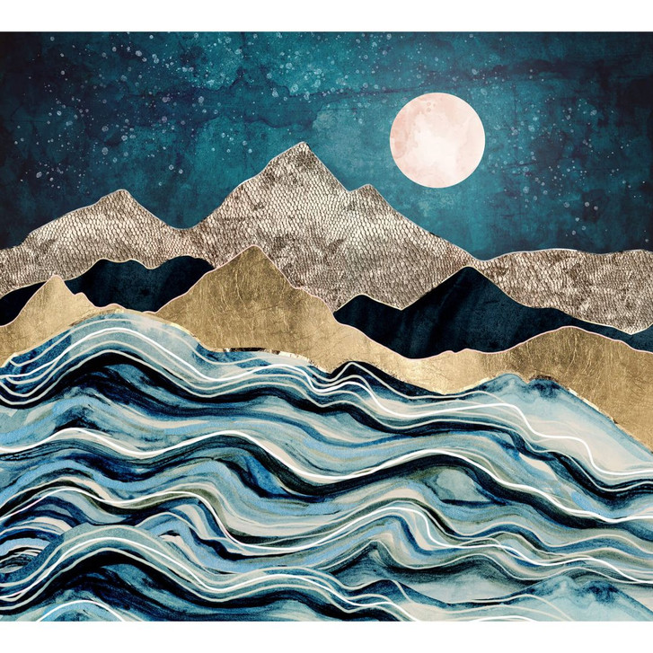 Bereichere dein Zuhause mit raffinierten Bildern und schaffe einen einzigartigen Ort zum Verweilen! Dieser Kunstdruck von SpaceFrog Designs entführt dich in die Dunkelheit der Nacht. Der Vollmond scheint hell vom Sternenhimmel und erleuchtet das Meer und die Berge.