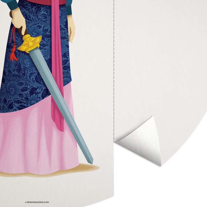 Wandgestaltung sagt viel über deine Wünsche aus. Setze mit diesem Bild neue Akzente und zeige, wofür dein Herz schlägt. Die runde Fototapete mit der Illustration der Künstlerin Nour Tohmé eignet sich besonders für ein Kinderzimmer. Sie zeigt die chinesische Krieger-Tochter Mulan. Der Disney-Zeichentrickfilm stammt aus dem Jahr 1998. Das mutige Mädchen Mulan verkleidet sich als Soldat und nimmt den Platz ihres Vaters in der kaiserlichen Armee ein. Am Ende des Films liegt das Schicksal Chinas in ihren Händen.